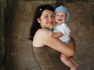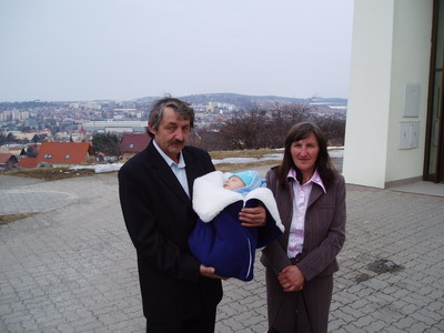 Tu ma moji krstní rodičia držia tesne po krstinách.