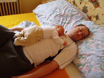 Aj tak sa najlepšie spí na tatinovi on je taký mekučký.