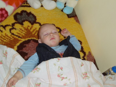 A tu spím vo svojej vlastnej detskej izbičke ktorú mi nedávno urobili moji rodičia. |